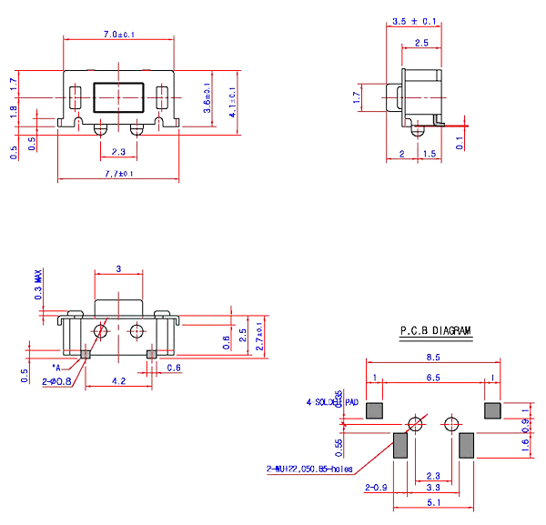 Description:Note 1. Model Type : SMD Switch 2. Model Name : ST-1112A 3. Rating : 12V DC 50mA 4. Life : 50,000cycles