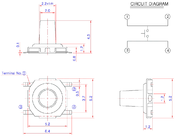 Description:Note 1. Model Type : SMD Switch 2. Model Name : ST-1187A 3. Rating : 12V DC 50mA 4. Life : 300,000cycles