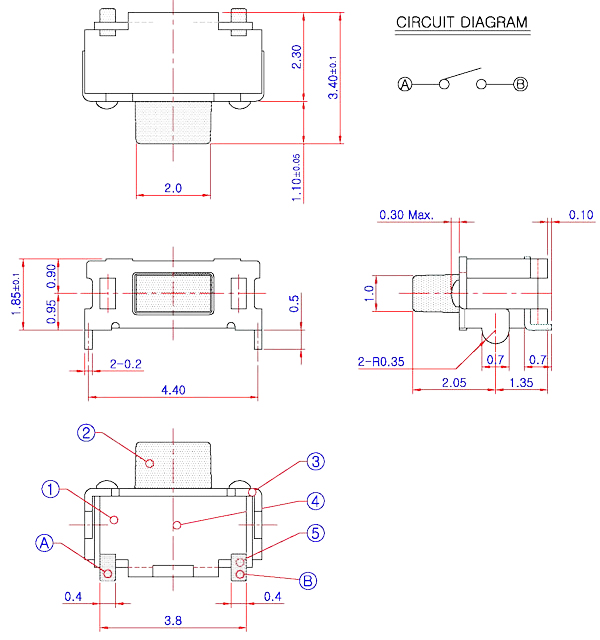 Description:Note 1. Model Type : SMD Switch 2. Model Name : ST-1114 3. Rating : 12V DC 50mA 4. Life : 50,000cycles