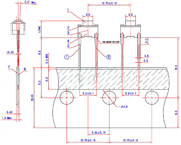 Description:Note 1. Model Type : Tact Switch 2. Model Name : ST-1101RT 3. Rating : 12V DC 50mA 4. Life : 50,000cycles 5. Height (L) : 4.3/ 5.0 mm