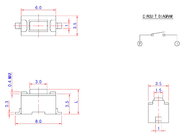 Description:Note 1. Model Type : SMD Switch 2. Model Name : ST-1101NE 3. Rating : 12V DC 50mA 4. Life : 50,000cycles 5. Height (L) : 4.3/ 5.0mm