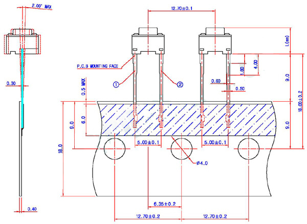 Description:Note 1. Model Type : Tact Switch 2. Model Name : ST-1104RT 3. Rating : 12V DC 50mA 4. Life : 100,000cycles 5. Height (L) : 4.3/ 5.0 / 7.0 / 8.0 / 9.5 / 7.3 / 12.5 / 13.5mm