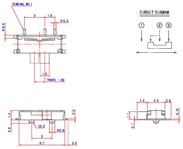 Description:Note 1. Model Type : Slide Switch 2. Model Name : SS-1290 3. Rating : 4V DC 0.3A 4. Life : 10,000cycles